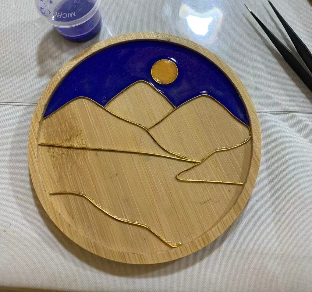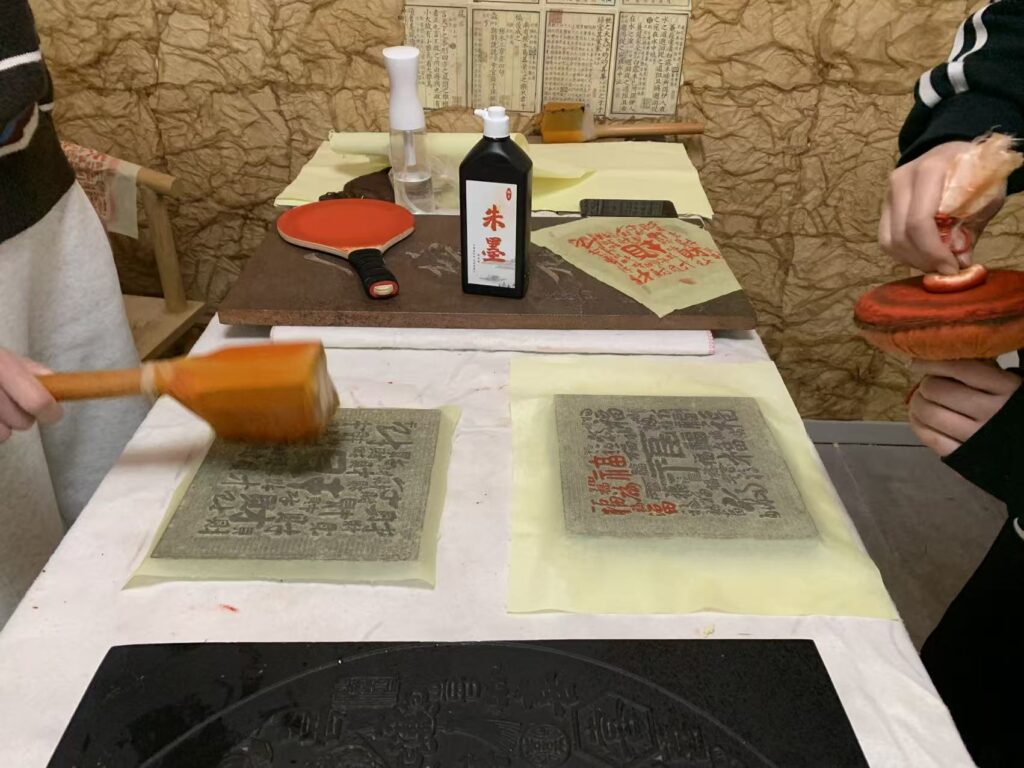During the visit, our team immersed themselves in traditional craftsmanship. We tried our hand at cloisonné enamel art, creating our own pieces inspired by the beauty of distant mountains (“Yuan Shan”); explored rubbing techniques to transfer intricate designs onto paper; and experimented with gold leaf painting, producing works symbolizing prosperity (“Ma Shang Fa Cai” – “Immediate Wealth”). Each activity offered a deeper appreciation for the precision, patience, and artistry of these traditional crafts.